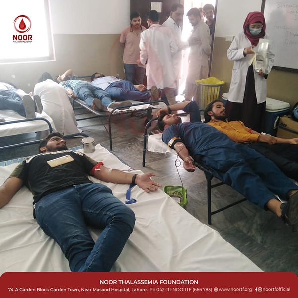 School of Law College Gulberg Lahore سکول آف لاء کالج گلبرگ لاہور کے زیرِ اہتمام نور تھلسیسمیا فاؤنڈیشن میں زیرِ علاج تھلیسیمیا اور ہیموفیلیا اور بلڈ کینسر کے مریض بچوں کے لیےبلڈ ڈونیشن کیمپ کا انعقاد کیا۔ کیمپ میں طلبہ نے جوش و خروش سے حصہ لیا۔ اس خون کی مہم کا مقصد تھیلیسیمیا اور ہیموفیلیا سمیت دائمی اور جان لیوا بیماریوں میں مبتلا مریضوں کے لیے خون جمع کرنا تھا۔ نور تھیلیسیمیا فاؤنڈیشن کے ڈائریکٹرز اینڈ مینجمنٹ تمام افرادکی شکر گزار ہے کہ ان کی پرجوش کوششوں اور فعال شرکت کی وجہ سے خون کے عطیہ کی اس مہم کو کامیاب بنایا گیا۔